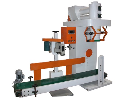 9、包装秤使用过程:人工协助上袋,自动称重、夹袋、充填,经输送带传递进行自动封口或缝包